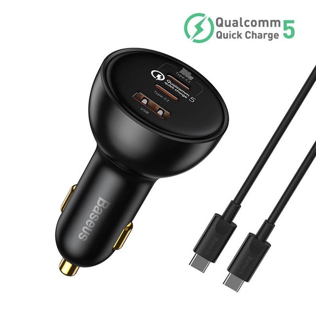 Baseus Qualcomm® Quick Charge™ 5 Technology Multi-Port Fast Charge Car Charger C+C+U 160W set Gray(with Baseus Xiaobai series fast charging Cable Type-C to Type-C 100W (20V/5A) 1m Black)